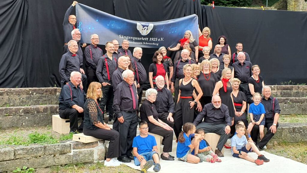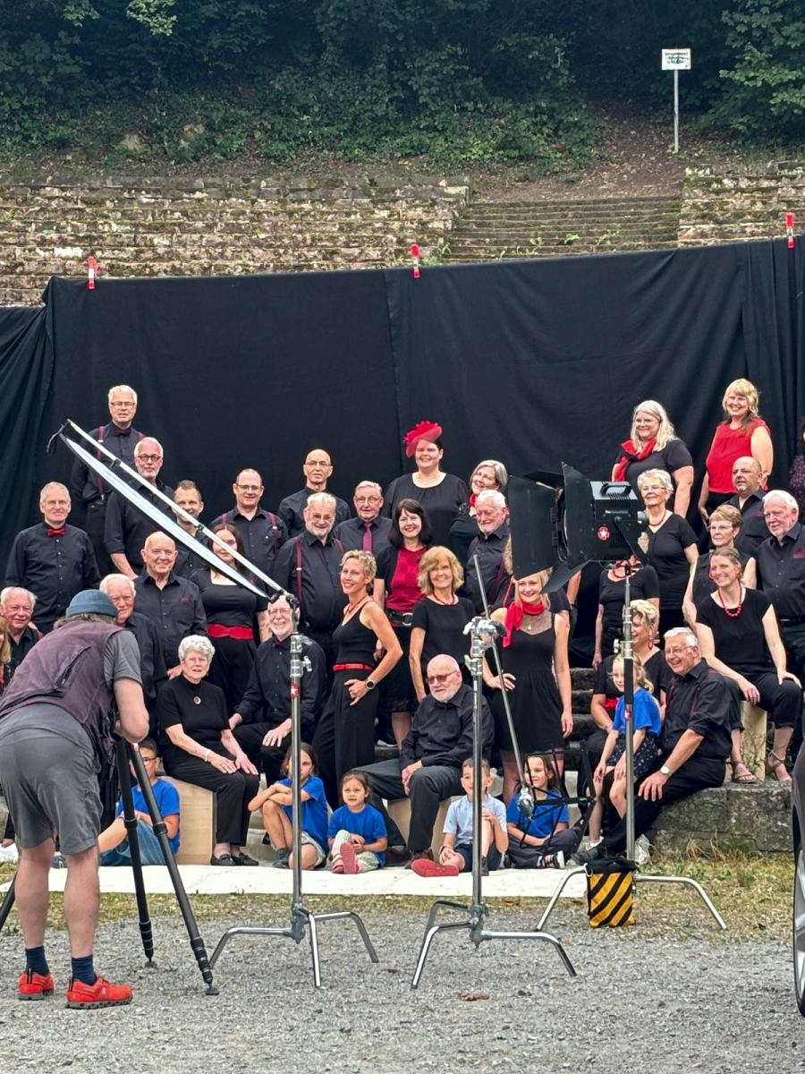 Zu einem hochinteressanten Fotoshooting trafen sich alle Aktiven des Sängerquartetts incl. der Kinder am 27. Juni bei optimalen Wetterbedingungen auf der Freilichtbühne Heppenheim. Johannes Kaiser hatte alles sehr aufwändig und professionell vorbereitet – incl. imposanter Freiluftkulisse.