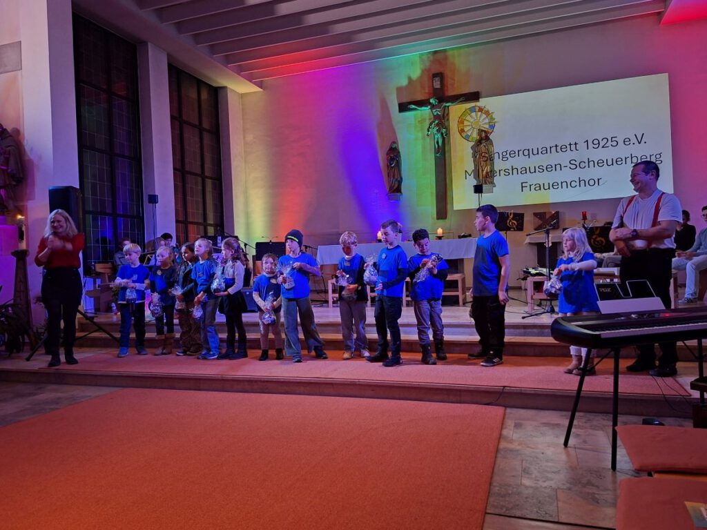„Urheber“ für die tolle musikalische Leistung sind unser Dirigent Raimund Stüwe, der die Kinder mit unglaublichem Einsatz, gepaart mit spielerischer Leichtigkeit zu Höchstleistungen animiert, wobei der Spaßfaktor immer an vorderster Stelle steht, sowie das rührige Betreuertem mit Vanessa Kohl an der Spitze.