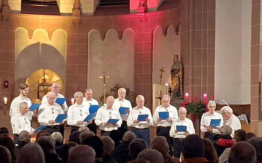 Unser Männerchor begann den Chorreigen mit der orthodoxen Liturgie „Kyrie/Maria durch ein Dornwald ging“ (Solisten: Manfred Gremm, Roland Knapp, Thomas Wagner) und