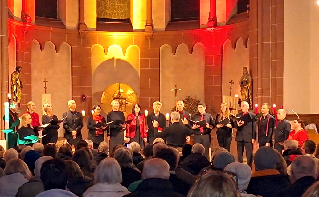 Unser Männerchor begann den Chorreigen mit der orthodoxen Liturgie „Kyrie/Maria durch ein Dornwald ging“ (Solisten: Manfred Gremm, Roland Knapp, Thomas Wagner) und